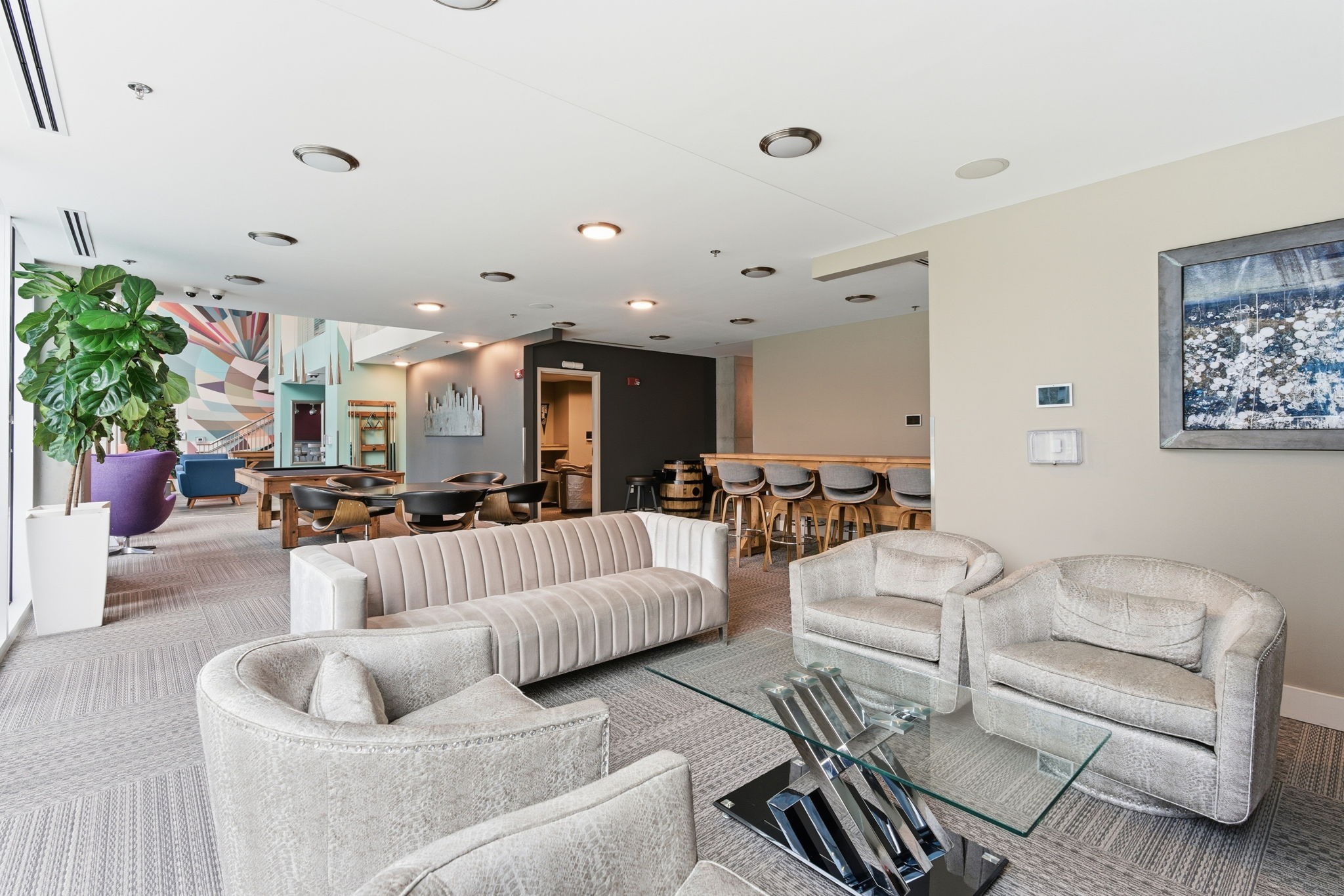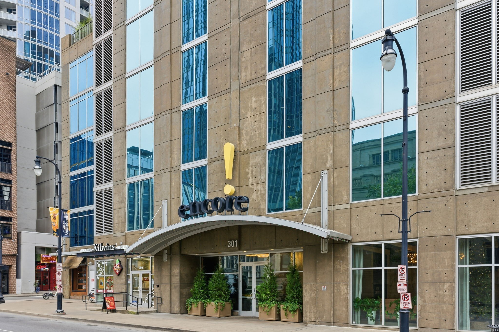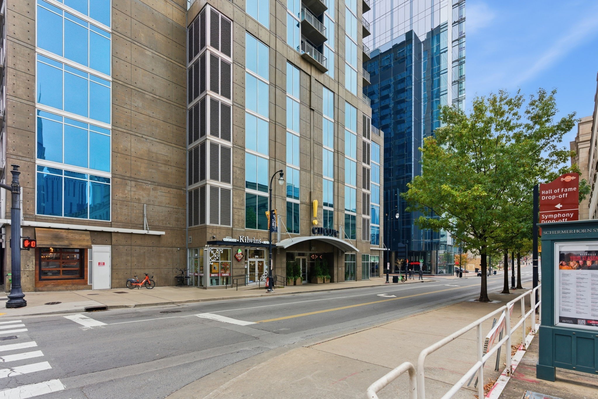 Encore residents enjoy excellent amenities, including a 24/7 concierge, fitness center, pool with cabanas, resident lounges, business center, theater room, and secure garage parking. The building is known for its friendly community and convenient lifestyle.